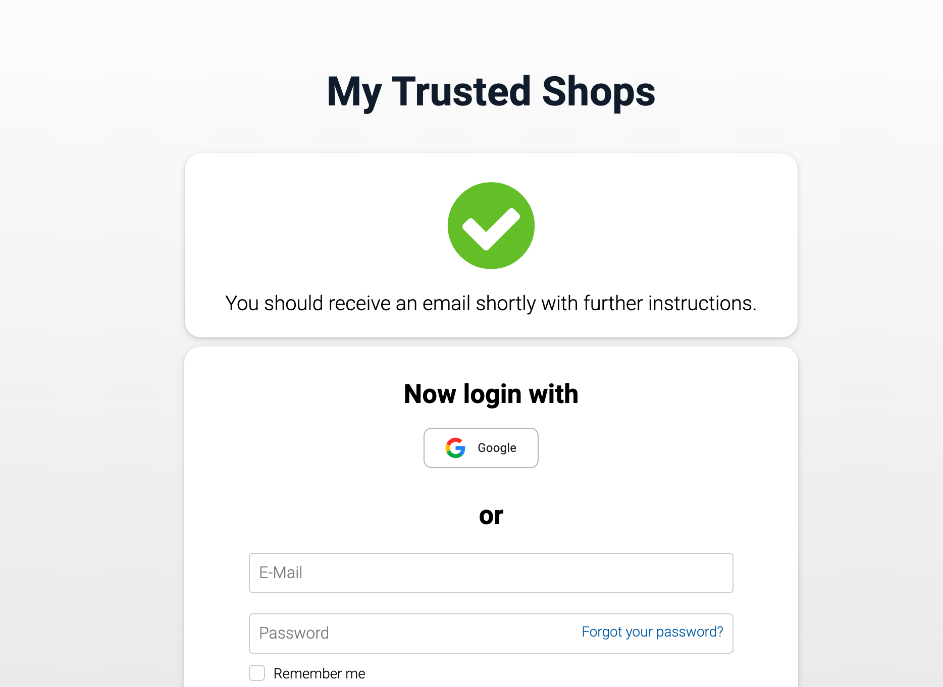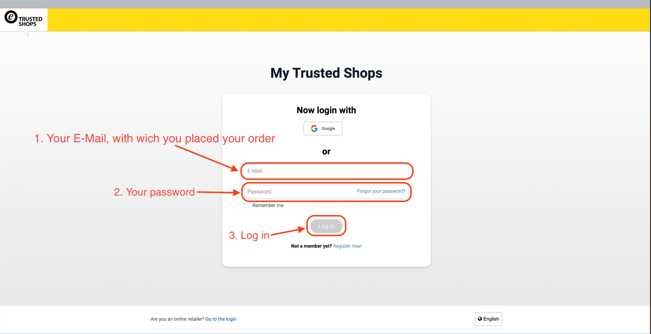 Enter your e-mail address that you used when you placed your order with Servershop24 and then enter your Trusted Shops password and click on “Login”.